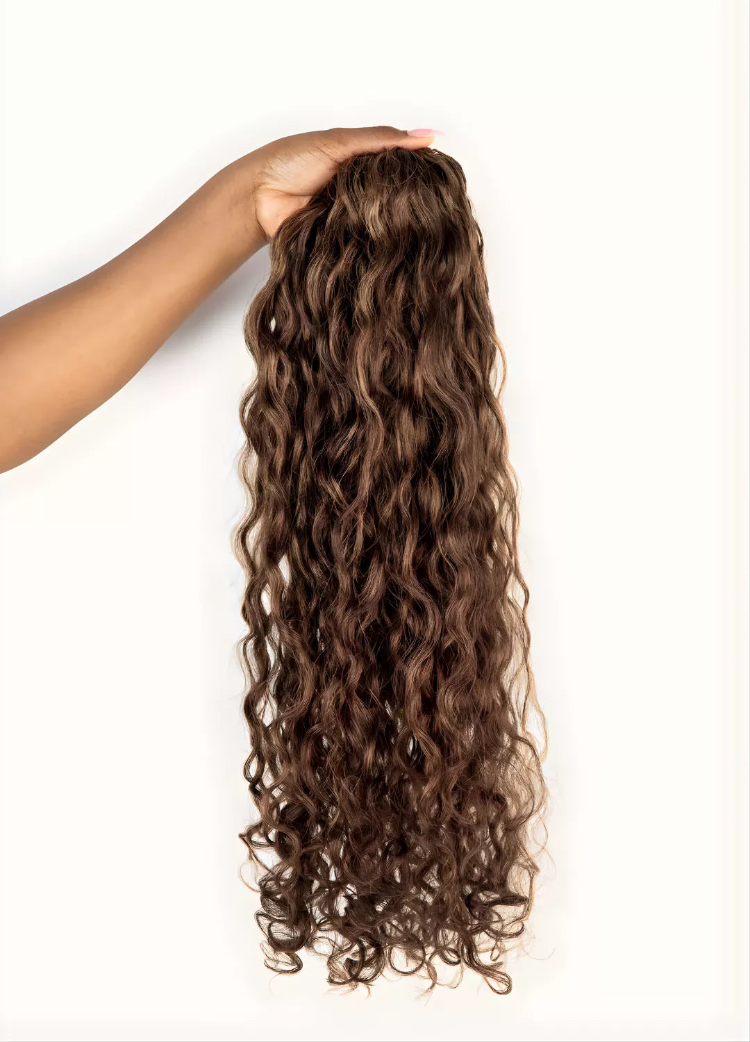 SexyHead Hair's exclusive range of Curly Invisible Tape extensions. Crafted from premium double drawn & cuticle aligned Remi hairmaking them silky smooth, naturally soft & extra thick. This unique option of extensions is a special order item. Simply choose your desired texture, colour & length & we will send your new hair within 16-20 days.